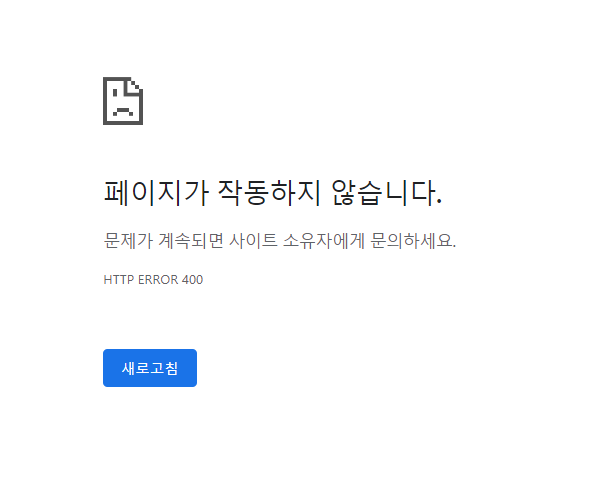 HTTP ERROR 400 이 발생하면서 접속이 안되는 문제가 발생했다. 브라우저 문제인가 하고 크롬도 종료 후 재 시작 해보고 노트북도 재부팅 해봐도 여전히 접속 불가...