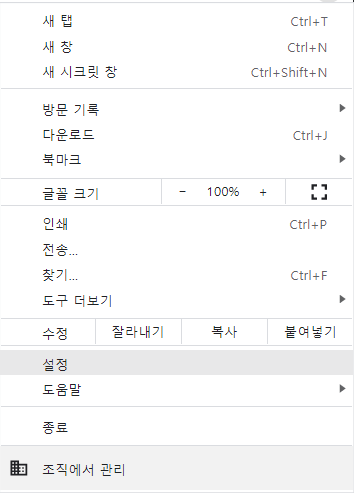 이때 크롬 브라우저의 설정 페이지에 접속한다.