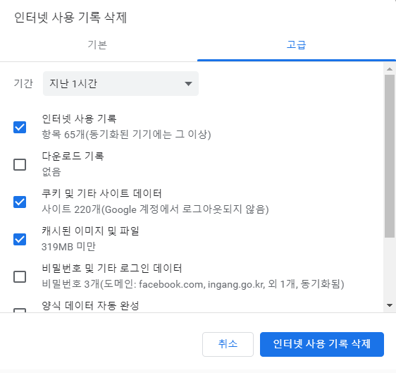 설정 페이지에 들어가면 개인정보 및 보안 탭이 보인다. 해당 탭을 눌러 인터넷 사용기록을 삭제 해준 뒤