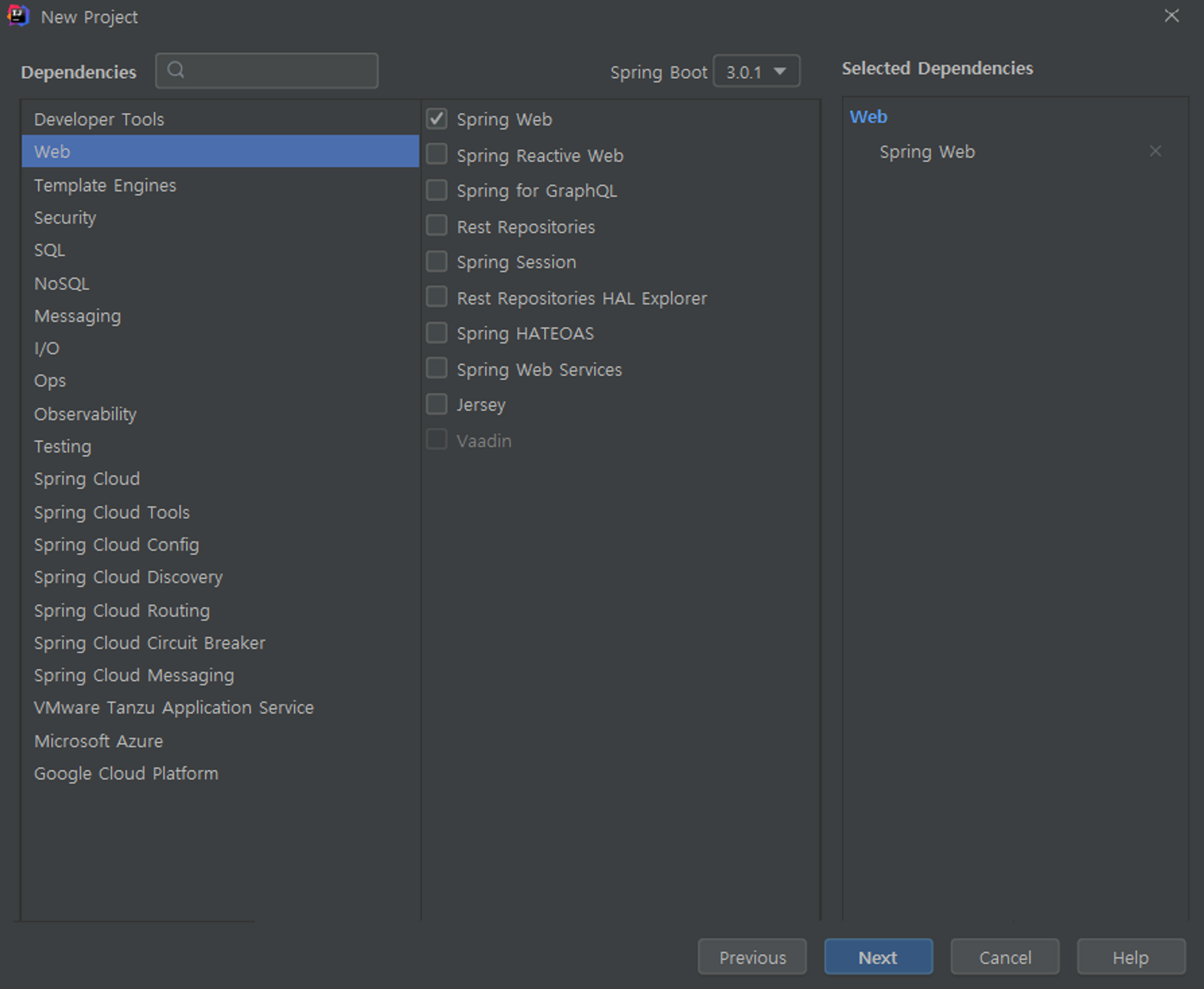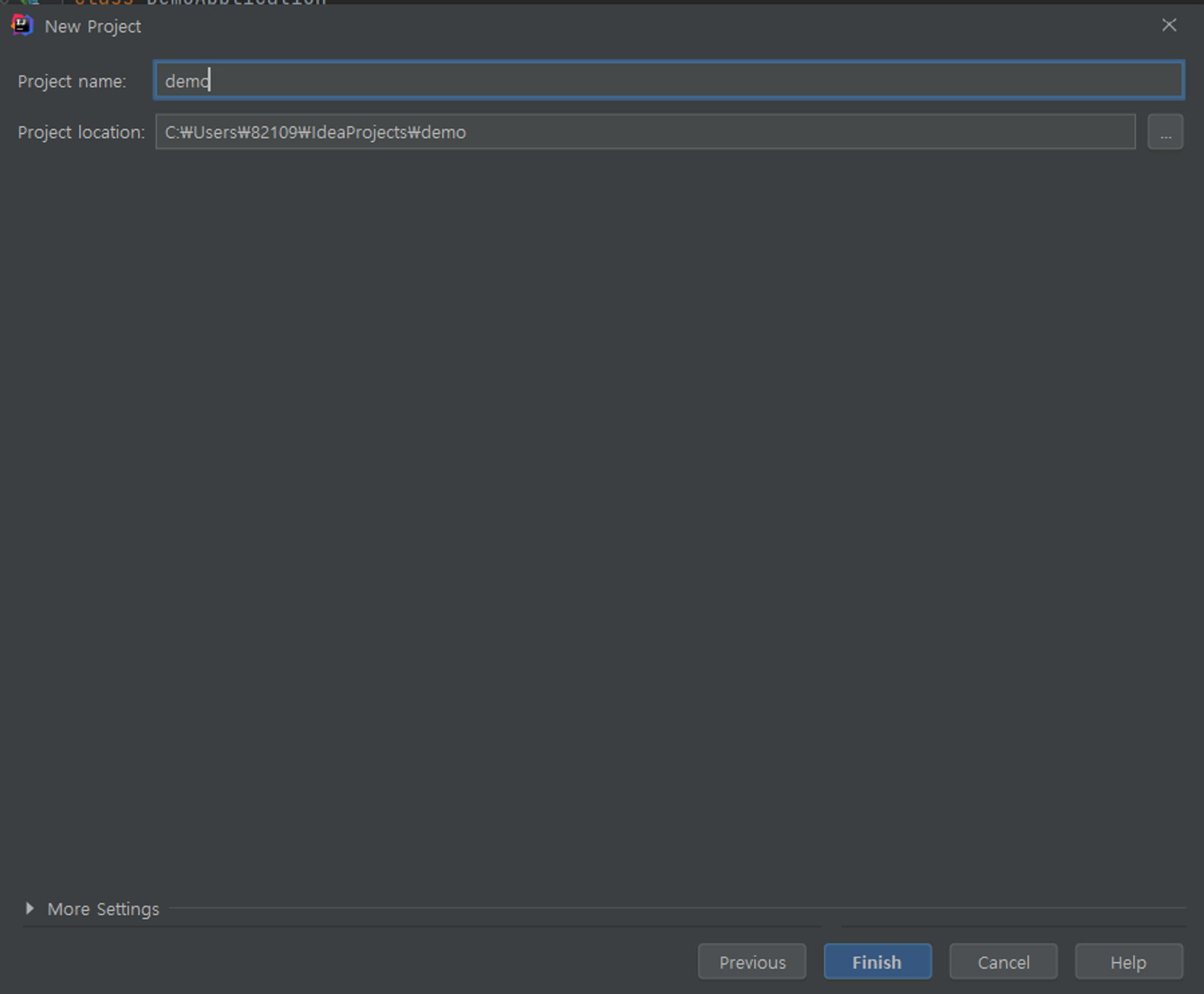 - dependencies는 Web에서 spring web, SQL은 spring data jdbc, H2 Database를 선택 후 프로젝트 명을 입력한 후 Finish를 눌르면 프로젝트가 생성된다.