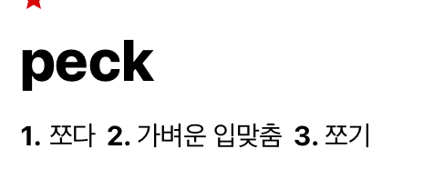 - He pecked her on the cheeks as he went out. → 그는 나가면서 그녀의 볼에 가볍게 입을 맞추었다.