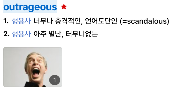 - She says the most outrageous things sometimes → 그녀는 가끔 아주 터무늬없는 말을 한다.