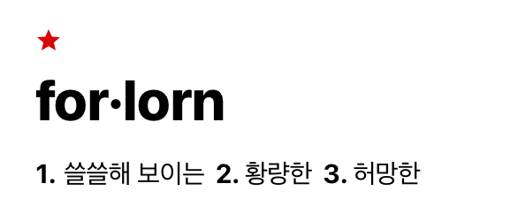 - She looked so forlorn, standing there in the rain. ⇒ 쓸쓸해 보이는